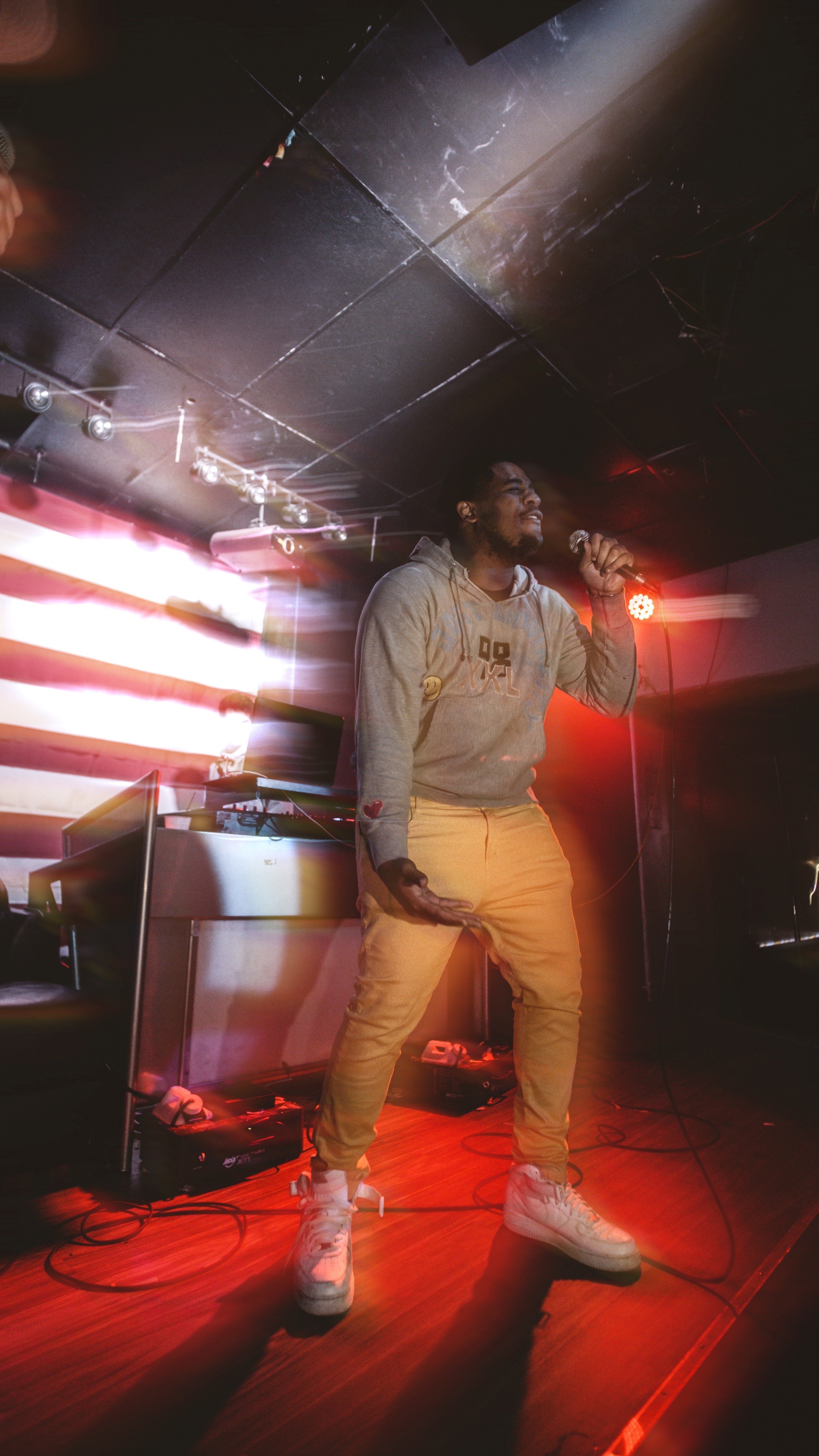 The night was set to begin around 9 P.M. doors were around 8. To set the mood for the night they had a DJ take the stage till the opener. This allowed everyone to gather and get some drinks. From there we had Kid B Music with his clean yet cold vocals he touched the crowd with his song Sober which you can stream on all platforms now.